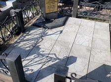 Дожидаемся высыхания бетонной плитки, затем проверяем её на прочность. Покрытие не поддаётся внешнему воздействию, а значит цемент успешно застыл и плитка надёжно зафиксирована на могиле. Фотографируем окончательное состояние места захоронения.